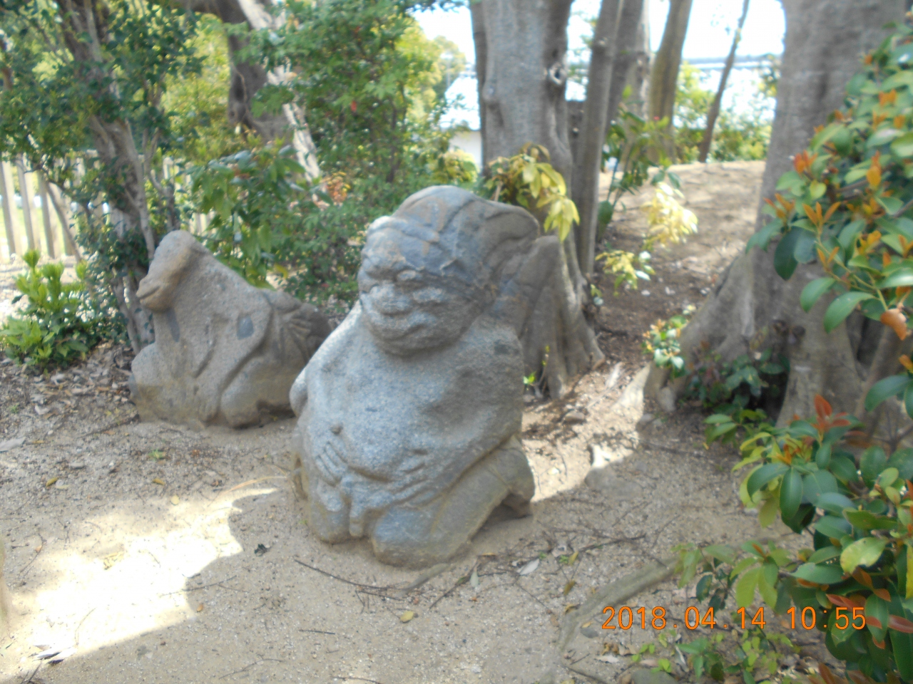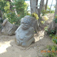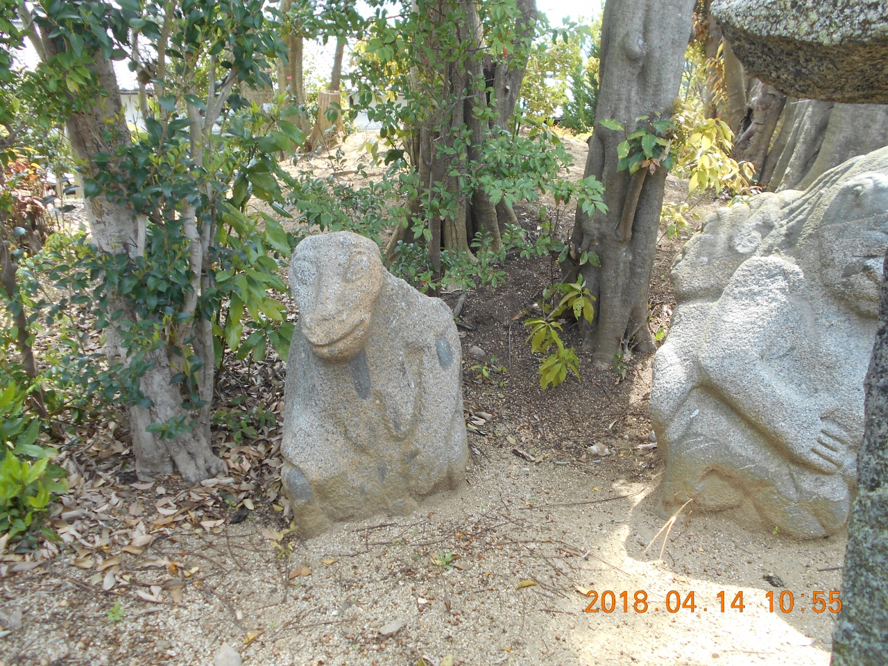 吉備姫王墓の植え込みの木々の中に置かれているので よく見ると探すことができます。