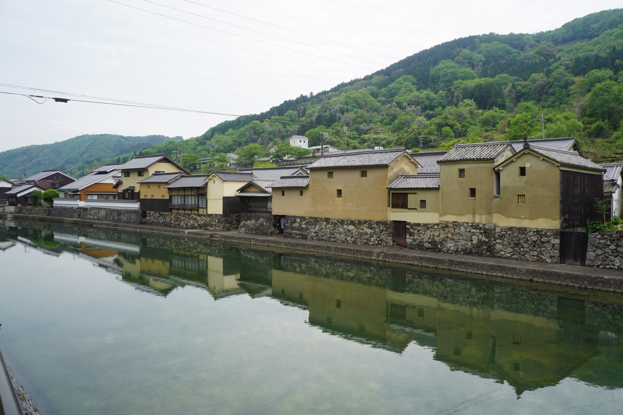 佐用川沿いに連なる座敷や土蔵群などの川端風景が一番の見どころ。対岸から眺めると建物が川面に映って長閑な景色が拝めます。市街の端っこですが、宮本武蔵初決闘の地や道の駅もあるし、観光資源もまあまあでしょう。