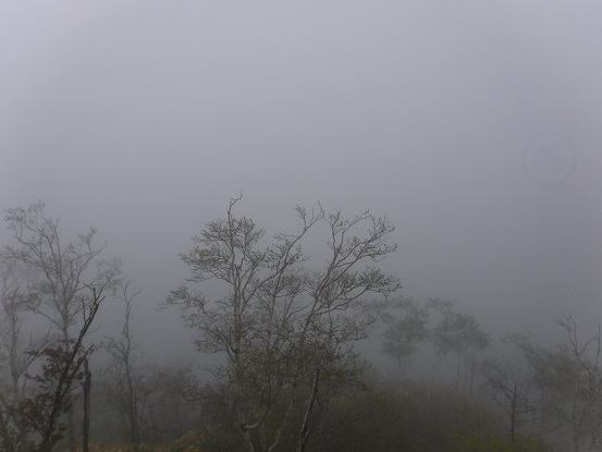 道東へ行ったら是非摩周湖を見たいと思い、定期観光バスで行ってきました。生憎の雨、出発前から絶対見れないだろうと思ったら、やっぱり見れませんでした。せめて岸辺くらいは見えるかなと思いましたが、雨プラス霧で視界が4~5mくらい、最初行った第一展望台もダメで、帰り際に通過した第三展望台もダメでした。その後硫黄山に行って振り返った時に、レストハウス越しに見えた湖は方向的に摩周湖だと思うんですが、バスガイドさんに確認するのを忘れてしまって、今でも気になってます。