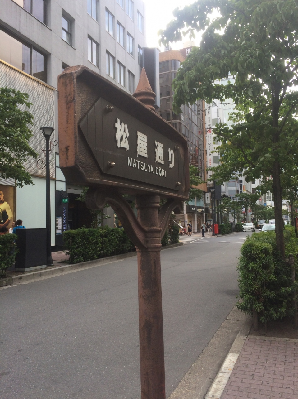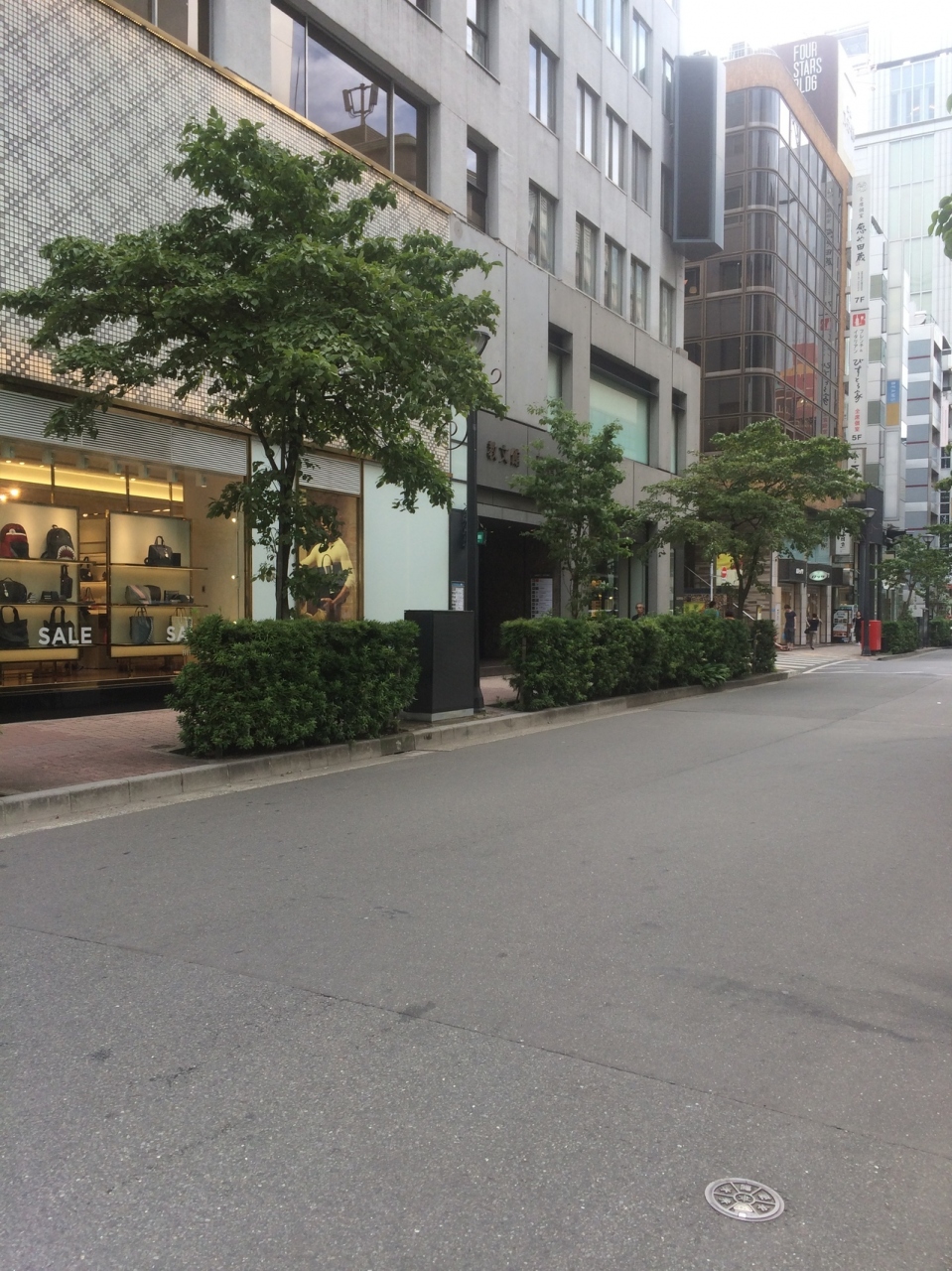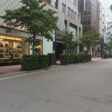 デパートの松屋から有楽町駅方面に伸びていて、みゆき通りに繋がります。途中いくつか枝別れした通りもありました。沿線には木々や整備された草が植えられて、通り沿いのビル文字高くなく落ち着いた雰囲気の通りでした。