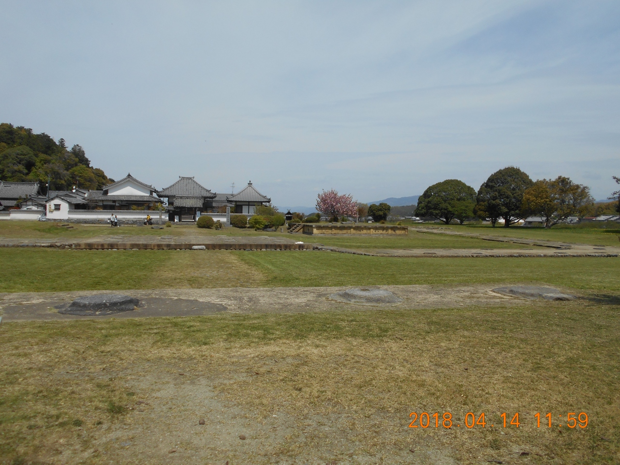 後ろに見えるお寺の建物の大きさと比べても これだけの広さのところに建っていた川原寺がどんなに大きかったのだろうと思いながら眺めていました。