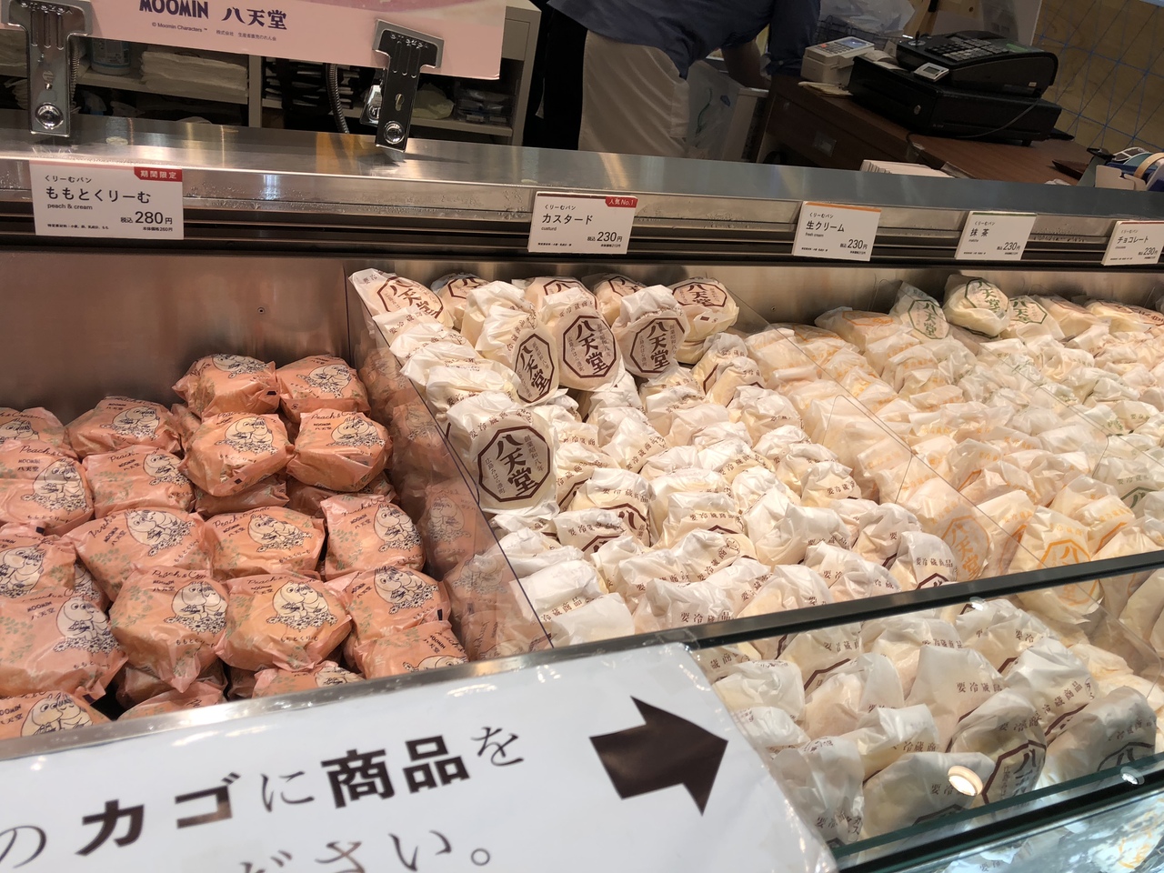 入って左手にスイーツショップのコーナーがあり、ここのお店はかなり頻繁に入れ替わっているように思います。ちょうどクリームパンの八天堂が入っていました。