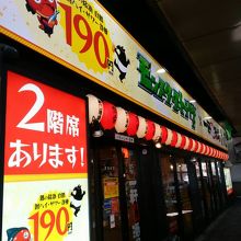 新橋駅からすぐのところ(ガード下)にある居酒屋です。モンスターストライクとコラボしたお店のようで看板などにもモンスターストライクのキャラクターが描かれていました。チューハイ、サワーなどは190円と低価格で飲むことができますし、おつまみも充実しているのでリーズナブルな値段で飲むにはオススメのお店です。
