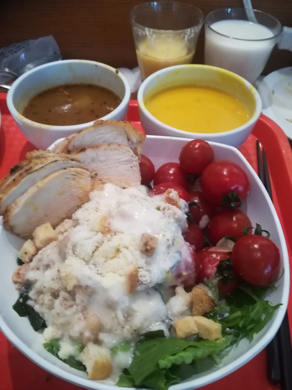 ブッフェの内容も野菜や鶏ムネなどヘルシーな食材中心で スープ、パン、飲み物、ドリンクもあるので十分楽しめ ガッツリ野菜をとりたいときには訪れます。