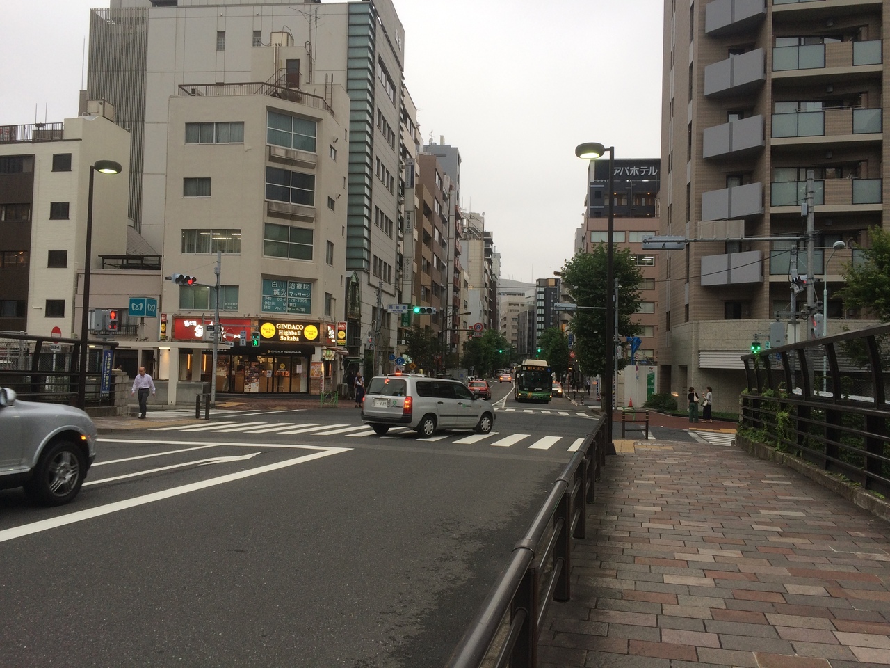 橋の下は川ではなく、綺麗な自動車道でした。30メートルぐらいの長さで新しく感じます。落下防止のためか歩道には網のようなものが張られていました。橋としては特徴がなく何処にでもあるような橋でした。橋の上のランプが数緑色で、あまり見ない色でした。