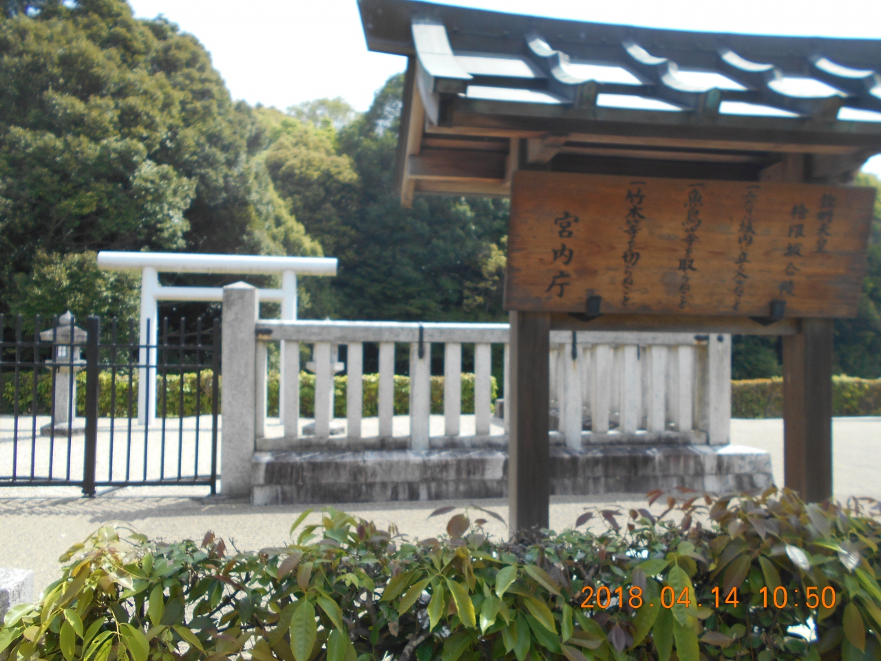 飛鳥駅前の観光案内所説明を受けて、いただいた地図を見ながら出発し、田んぼや畑の中の ほとんど人に会うこともない細い道が多く 不安に思いながら 近くまで行くとやっと見慣れた天皇陵の鳥居を見つけることができ 宮内庁の案内板で欽明天皇陵と確認して ほっとしました。