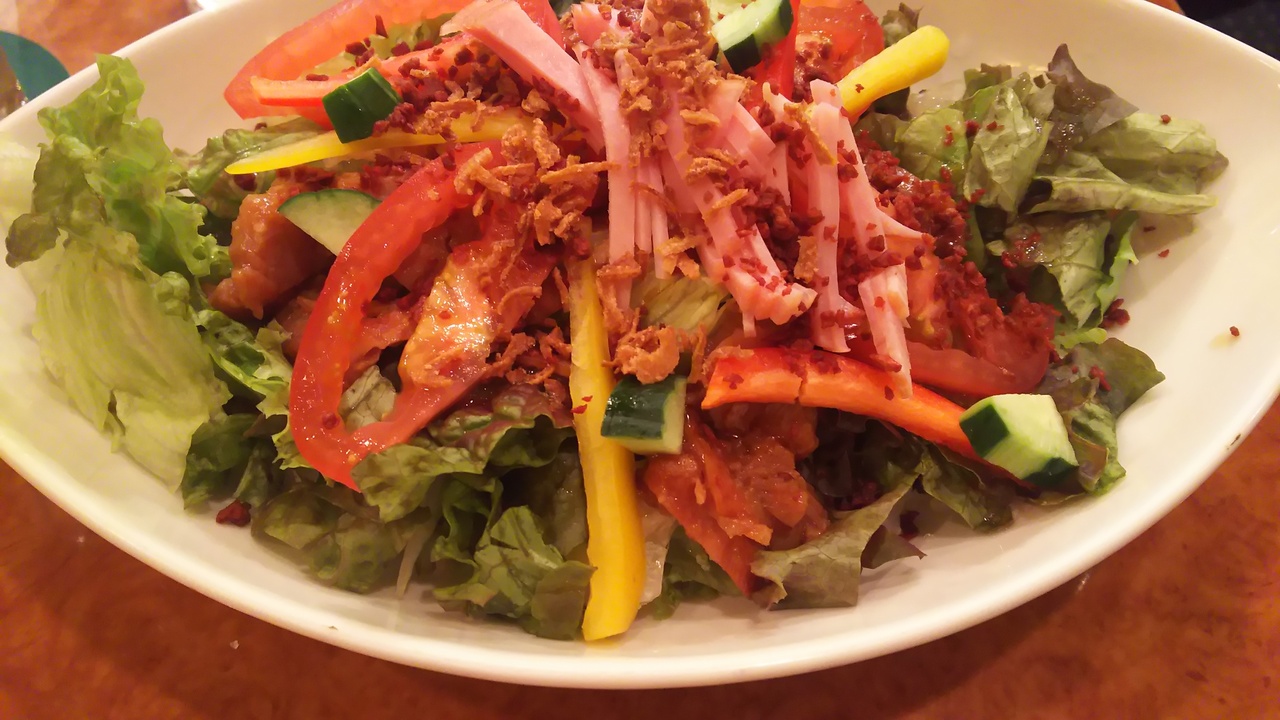 ボリュームもありましたし、トマトやレタスやパプリカなどがたくさんのってて野菜もきっちりとれます。チキンも柔らかく美味しかったです。
