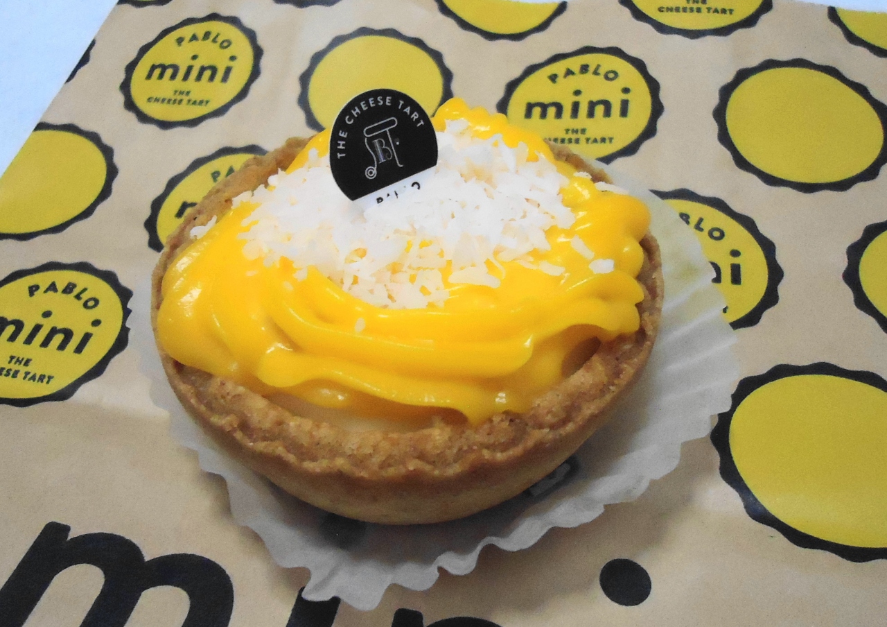 7月の季節限定マンゴーココナッツ(300円)は、チーズタルトにマンゴー果肉入りのクリームを絞り、ローストココナッツをトッピング。