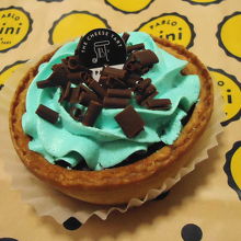 期間限定チョコミント(300円)は、鮮やかなミントホイップクリームと、チョコチップをあしらったチーズタルト。