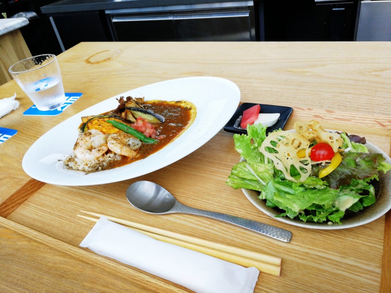 丸の内で用事を済ませ、アメックスのグリーンカフェを思い出して行きました。13時過ぎでしたが、カウンタ以外は待たないと行けなかったのでカウンタに案内してもらいました。お店は天井がとても高くて、ガラス張りの空間だったので明るい雰囲気でした。アメックスのプロパーカードを持っているとドリンク無料でいただけます。(同伴者も)。僕はグリーンでの利用です。ドリンクはキウイとレモンのミントジンジャーエールとメロンボールのシャンパンモヒートをいただきました。ランチはカレーと牛丼にしました。