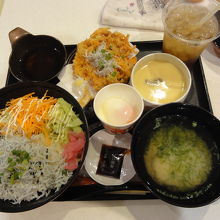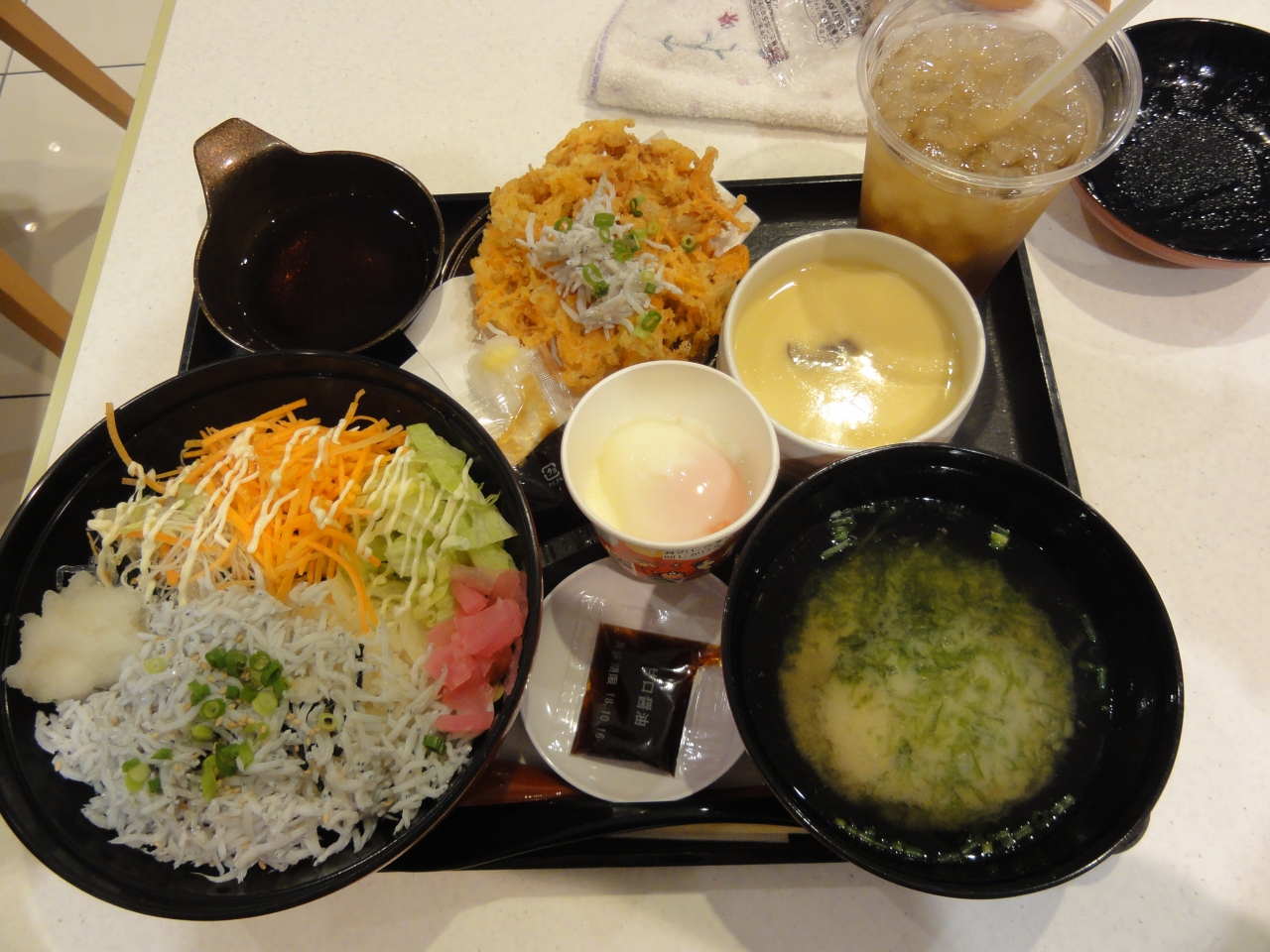 初めての辻堂、どこでランチにしようかとフードコートに行くと行列出来てるお店あり。江ノ島のしらすが食べられるお店でした。かき揚げも付いたセットで釜揚げを食べてみました。茶碗蒸し、温泉卵、サラダ、お味噌汁も付いてボリューム一杯でした。サクサクのかき揚げが特に美味しかったです。