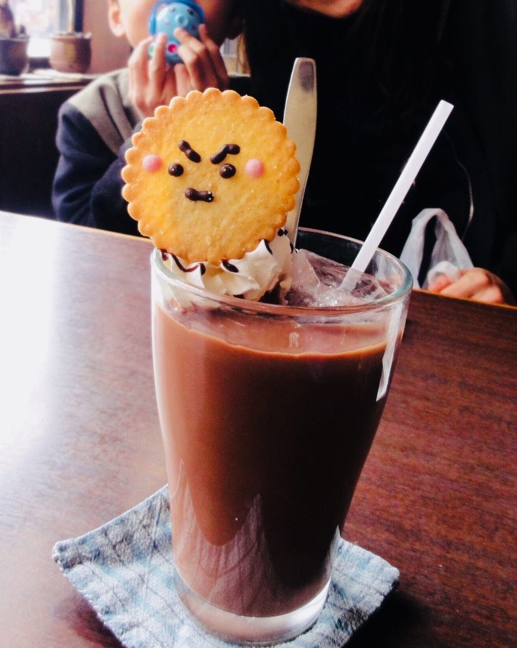 ココアを注文すると、顔つきクッキーの飾りつけが可愛らしくてほっこりしました。