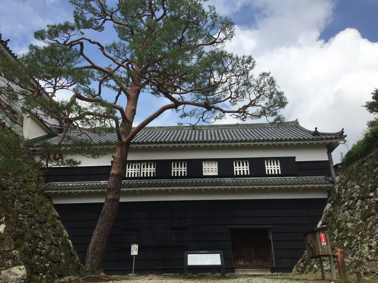 高知城の天守閣に登っていく途中に目の前に現れます。黒い大きな壁、のようで説明書きを見ると門とのこと。こんな場所に門?不思議に思って二の丸に上がるとそのユニークな構造がわかります。本丸に繋がる通路の役割も果たす一人二役の門だったのです。