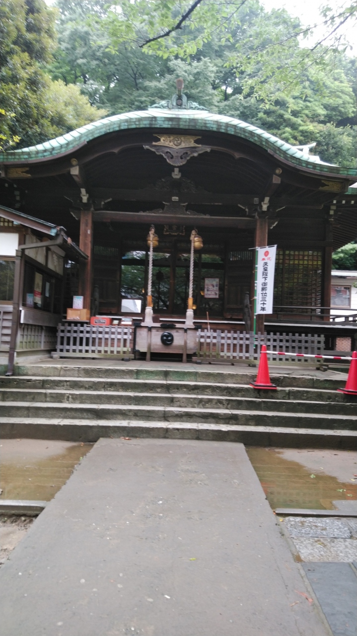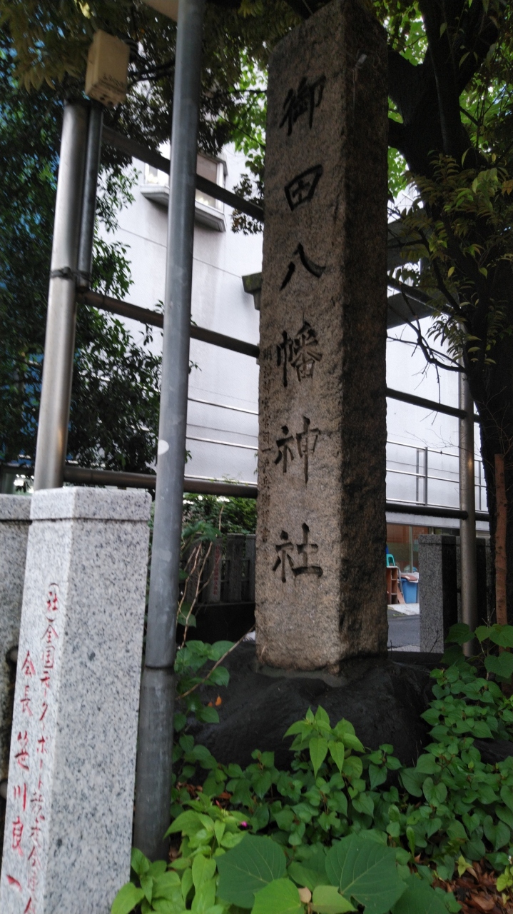 田町駅から品川駅方面へ歩いて行くと、大きなオフィスビルや高級マンションが並んでいます。そんな中に、御田八幡神社と書かれた大きな看板が見えてきます。看板のすぐ横には鳥居があり、鳥居をくぐリ、石段を登ると本殿になります。周囲を木々に囲まれていて、街並みを見ることはできなくなっています。とても静かな空間です。