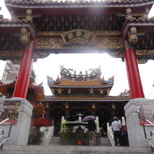 三国志の関羽を祀る色鮮やかな寺院、とても綺麗になっていました。中に入っての参拝はお線香を購入する必要ありますが境内迄は無料です。屋根の飾りや柱の彫刻はとても手が込んでいて見応えあります。階段は見学者を抑える役目もありそうです。