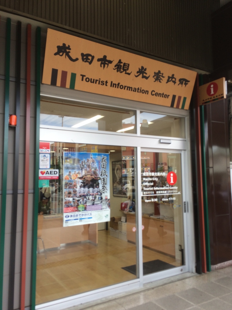 JR成田駅改札口出て右に行くと外に出て左側にあります。隣は蕎麦屋です。日本の玄関口の都市の案内所としては狭く、パンフレットや地図も少なめでした。案内人が2人いました。目立たない外観なので見逃してしまいそうになりました。