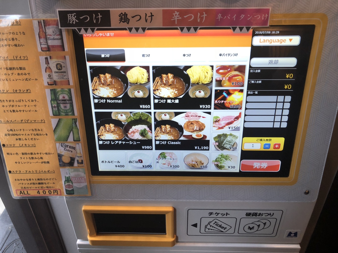 食券機は、タッチパネル式。店内は、バーのような雰囲気。