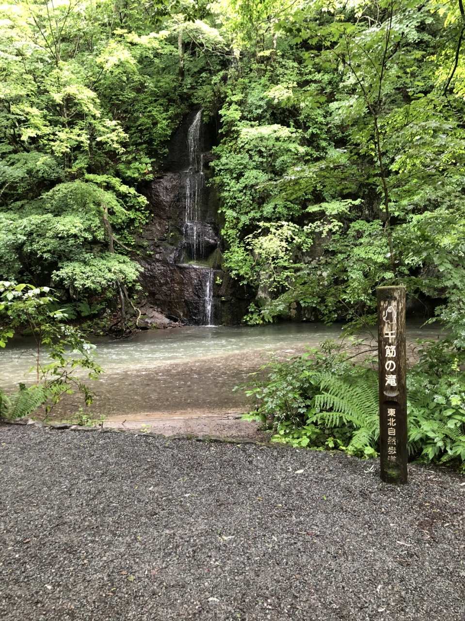 奥入瀬渓流には様々な滝がありますが、その中でも地味なほうの滝だと思います。しかし、千とは言わないまでも、確かに細い筋ができていて、その景観は少し珍しかったです。人は滝が地味なので、滝周辺にはあまり