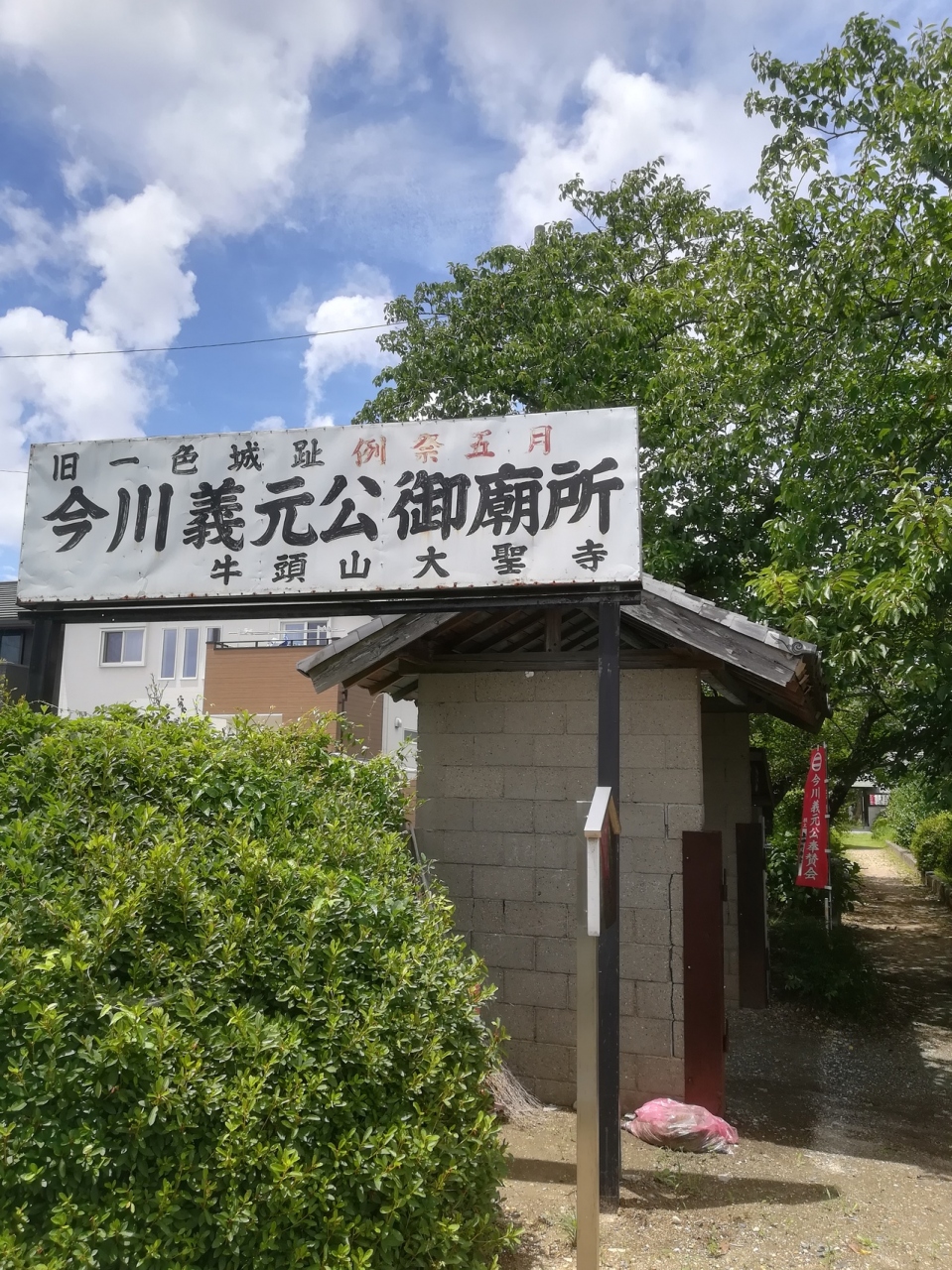 住宅地にある小さなお寺、すぐ横にはJR飯田線が通っており列車がよく見えます。お寺というより普通の民家のような感じ、お墓に続く参道が横手にあり、突き当たりが今川義元のお墓です。はるばる桶狭間からここまで義元の胴体を運んできたのですね、往時を偲んで合掌しました。