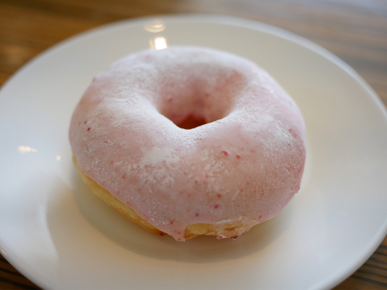 最初に、ドーナツですが、サイズ感があり、油分が少なく、ほんのり甘くふんわりした美味しいドーナツでした。