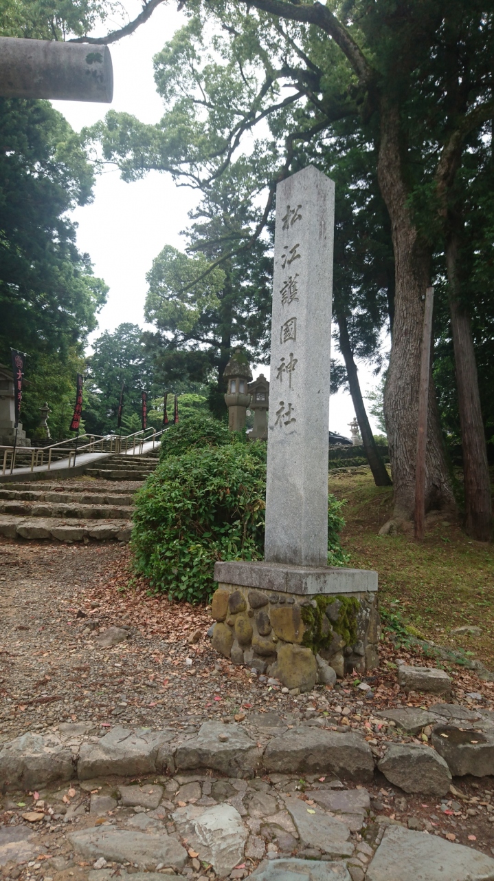 松江城の北西に位置する北の丸に松江護国神社がありました。戊辰戦争から第二次世界大戦までの戦争で命を落とした人たちの御柱が祀られています。境内までは急な坂を上って行かなければならないので、かなり疲れました。