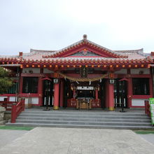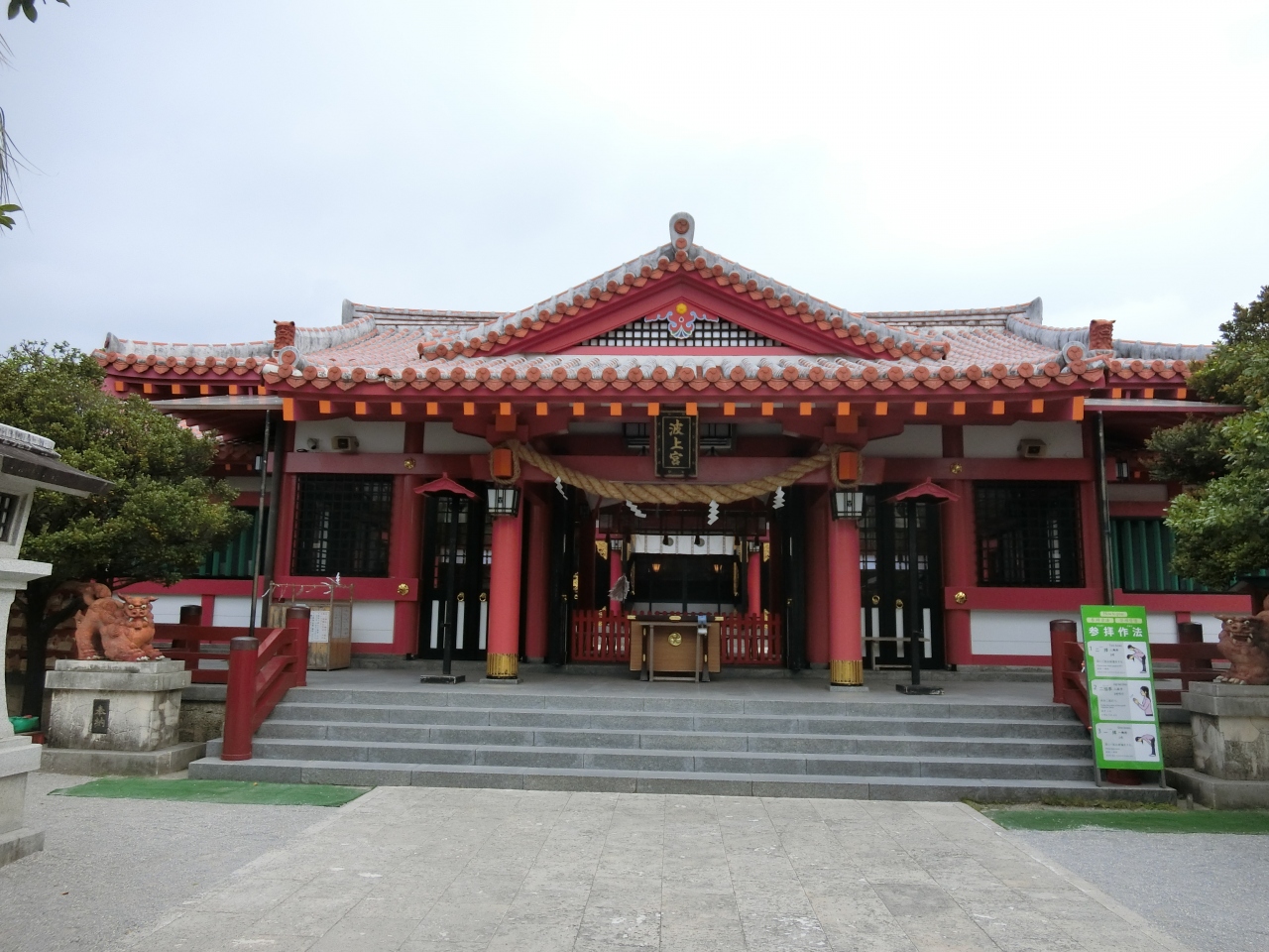 波の上ビーチに行くときに見つけました。鳥居をくぐると階段を上っていきます。ここの鳥居は黒い鳥居で珍しいです。本殿の屋根瓦は琉球瓦が使われていて沖縄らしさを表わしています。ここは多くの人が訪れて賑わっているようですが、時間が遅かったためか人がいませんでした。