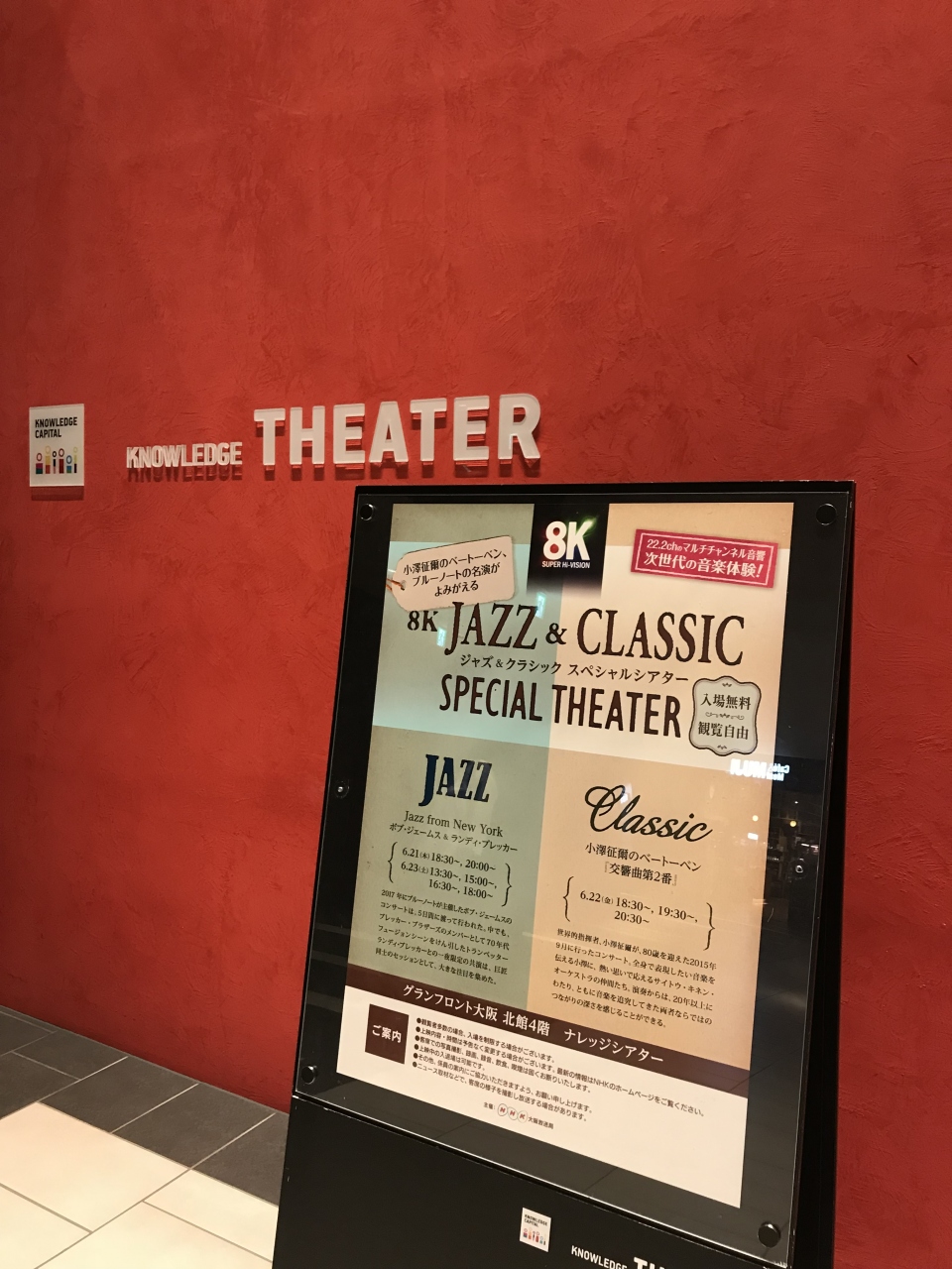 8Kスーパーハイビジョンの世界を体験できる無料イベントが開催されていたので、入ってみました。映画館のような大きなスクリーンと客席があり、本格的な映像設備の整った施設でした。いろいろなイベントに使われる施設のようなので、近くに来た際は、立ち寄ってみると良いかと思います。
