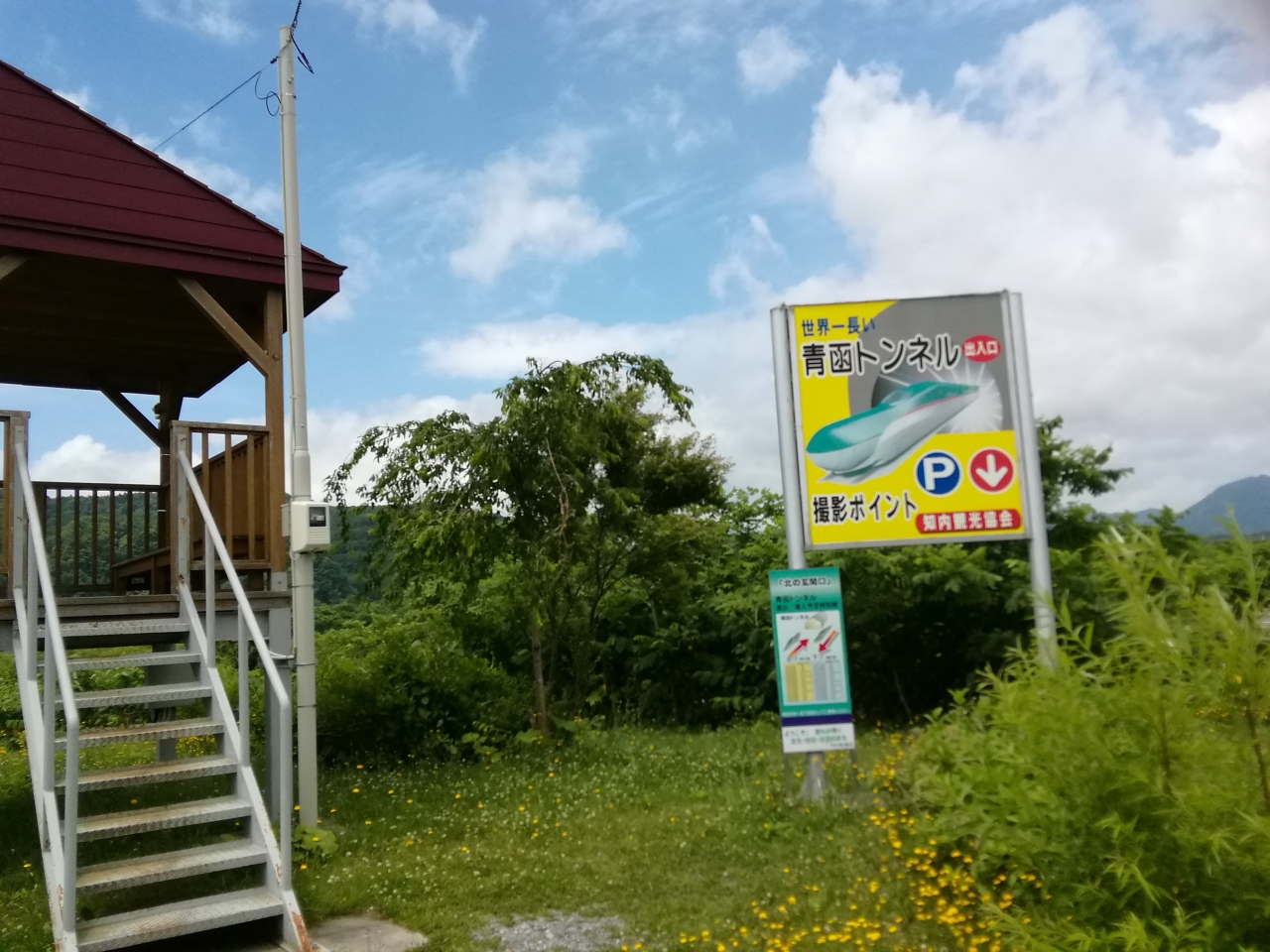 函館から車で1時間30分、道の駅しりうちを過ぎて新幹線の高架下をくぐるとあるのが、この青函トンネル記念撮影台です。車を止め木造の撮影台に上がると青函トンネルの出口が遠くに見えます。列車の通過時間に合わせていかないとただの景色しか撮れません。私も生憎30分以上の待ち時間があったのであきらめて次の場所に移動しましたが、新幹線がトンネルから出てきたらさぞかし豪快な一枚が撮れたと思います。