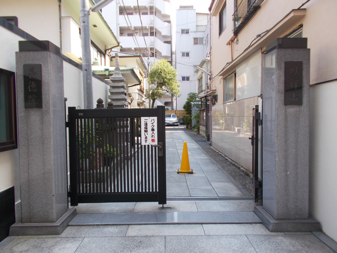 この長徳院は17世紀に湯島で創建されました。その後明暦の大火の後に今の浅草松が谷の場所に移築しています。このエリアにも多くの寺院があります。その中で門の表示が出ているのでわかりました。門を入ると左手に本堂があります。コンクリート造りです。