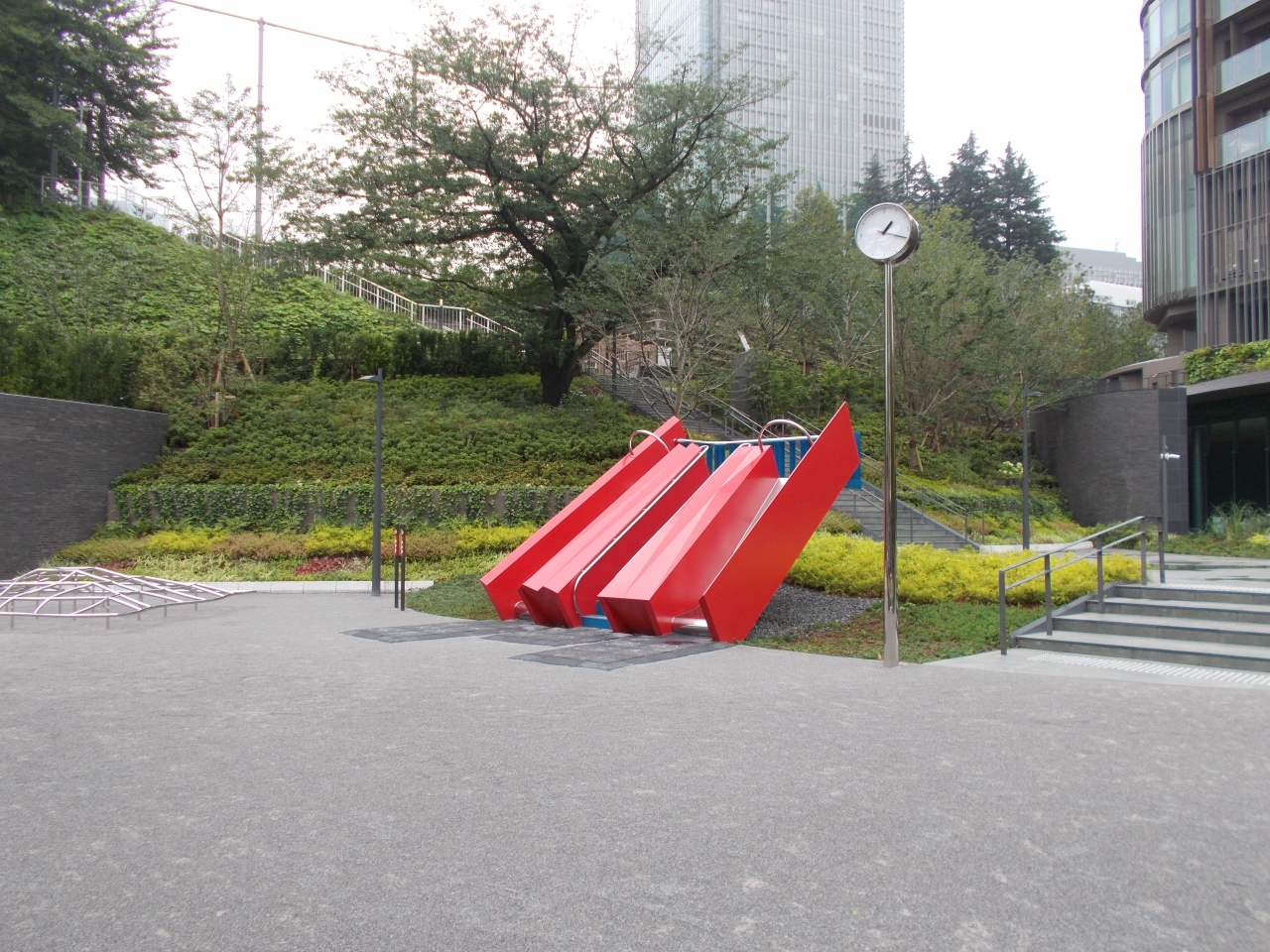 この桑田記念児童公園は地下鉄乃木坂駅から東に通じる赤坂通りに面しています。公園は児童公園ですので遊具が置かれています。遊具自体も色彩や形状が特徴的です。児童は楽しめる公園ですが静けさや造りなどから大人でも憩える公園になっています。