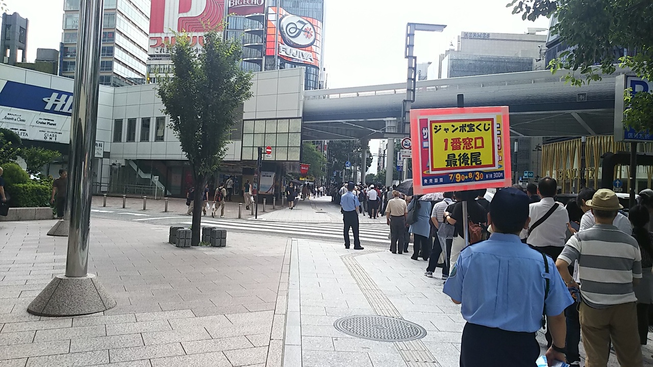 今日は7億円なのでマリオンのからくり時計の前まで並んでいました(^^;