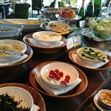 洋食和食どちらもあり、サラダやチーズ、フルーツなどもありました。