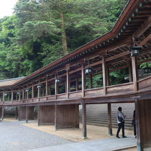 金刀比羅宮の御本宮と三穂津姫社の間に渡された長い渡り廊下が金刀比羅宮 南渡殿です。木造で中空に渡された約40mの檜皮葺きの渡り廊下には、釣り灯籠が掛けられ、直線ではなく、少し曲がった形がとても見事です。南渡殿を手前に入れて社殿を写真で写すと迫力があり、お薦めです。