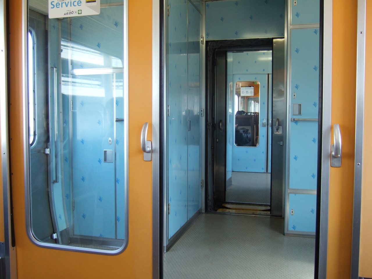 乗った時は空席がちらほらありましたが、発車間際に乗ってくる方も多く、発車する時には満席。デッキまで立つほどではありませんが、途中で入れ替わり、新千歳空港に着くころには7割程度の混み具合でした。