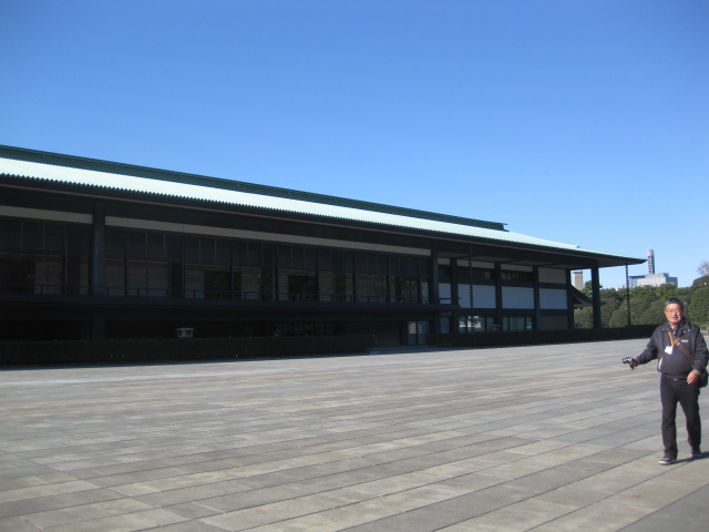 皇居一般参観に申し込みをし、ニュースで見かけるバルコニーを実際に見ることができました。ガラス張りで横に結構広いというのが率直な印象。とても広いと感じたこの広場には一度に3万人ずつ入れるそうです。陛下や皇族方が手を振っているお姿を思い浮かべながらゆっくり見学しました。周りの樹木の手入れが行き届いているのも印象に残りました。