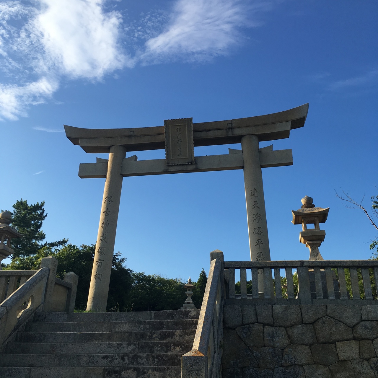 赤穂御崎に行った時に立ち寄りました。大きな鳥居があり、とても立派でした。こちらから見える景色も素晴らしく、近隣の島々を見ることができます。縁結びのパワースポットとも言われている場所で、参拝されている方がおりました。