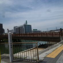 紫川にぶつかると、右手に木の橋がかかっていたので渡ってみました。