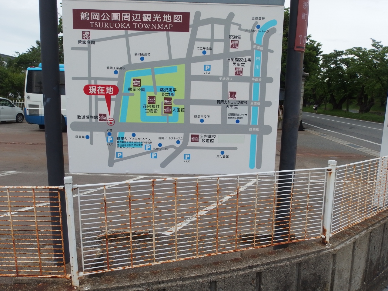 鶴岡市中心部にある鶴岡公園は、江戸時代には庄内藩酒井家の居城、鶴ヶ岡城の本丸、二の丸跡に明治時代に造られた公園です。園内には、荘内神社、宝物殿、大宝館など歴史的な文物のある建物があるほか、桜の名所としても有名だそうです。鶴岡駅からは2km以上離れているので、車やバスで行く方がいいと思います。駐車場は完備しています。