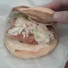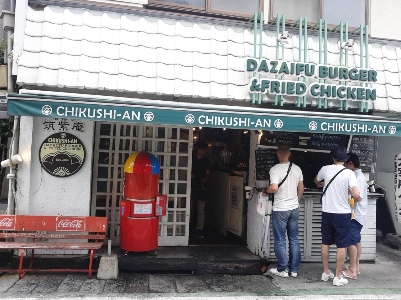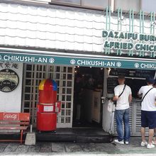 太宰府天満宮参道中心部から10m入ったところに、筑紫庵本店があり、唐揚げや大宰府バーガーが人気である。店内にもいす席が少しあり食べれるが、テイクアウトや食べ歩きする人も多い。大宰府バーガー500円をいただきました。美味しかったです。