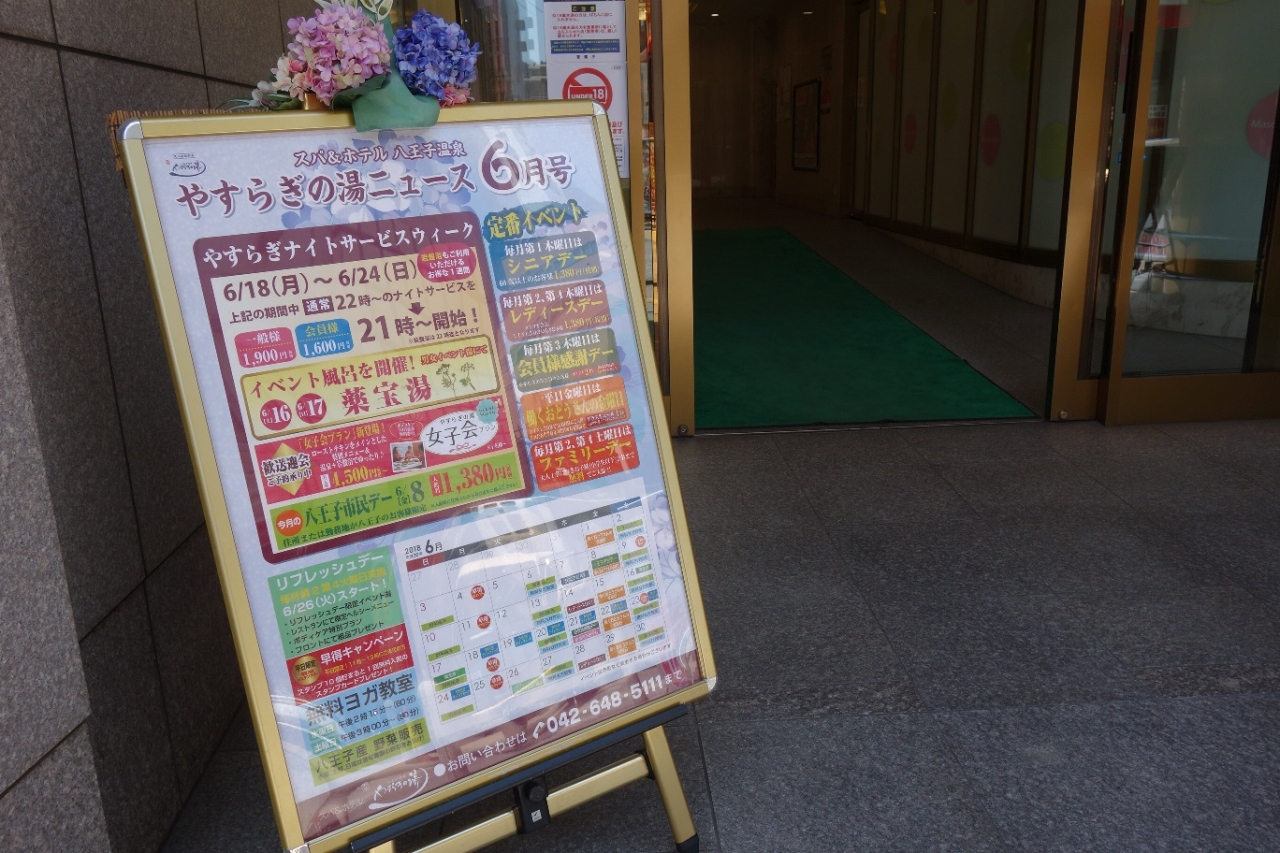 JR八王子駅の北側にある温泉施設です。下の階にはパチンコ店などが入っていて温泉らしい雰囲気は有りませんが、5階が受付でホテルも併設しています。この日は八王子に滞在することになっていたので、こちらの施設で温泉につかったり仮眠室で休みながら1泊しました。