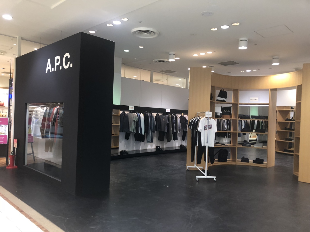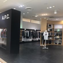 みなとみらいのクイーンズイースト2階、中央通路から入ってすぐの所にあるのがファッションブランドのA.P.C.