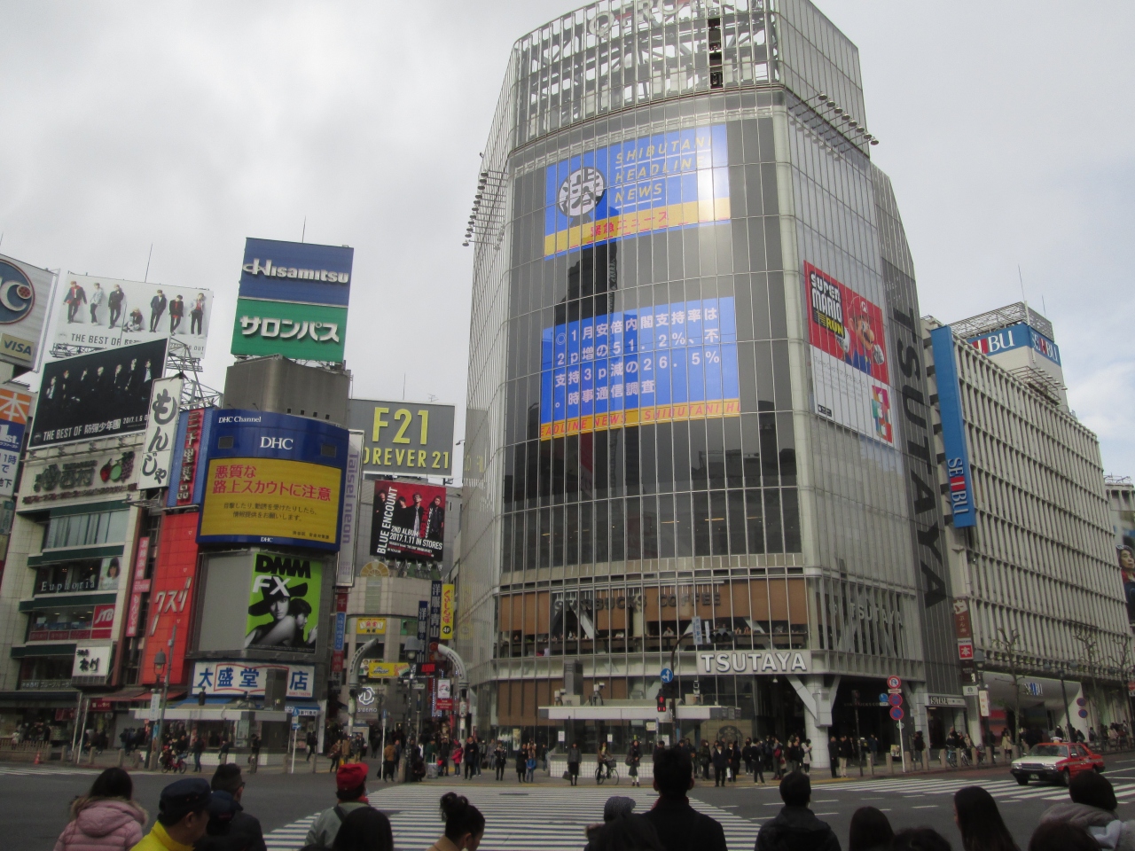 1年に2、3回程度の頻度でしか訪問しない渋谷ですが、渋谷のシンボル的ビルなのとテレビ中継で見かける光景なので久しぶりの感じがしません。1月は極寒で、特に、渋谷は寒いので、唯一、お客さんはまばらのようです。一方、最近は外国人観光客を良く見かけるようになりました。