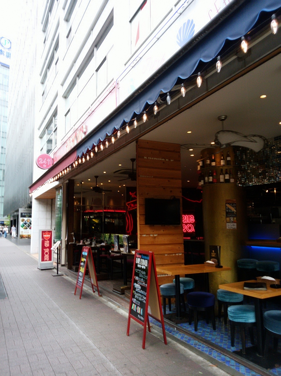 銀座コリドー街にあるアメリカンスタイルのダイニングバーです。24時間営業のお店は、店内がレッドとブルーに分かれており、レッドは「肉」料理、ブルーは「魚介」料理を食べることができます。店内の雰囲気も良く、料理も美味しいので満足しました。