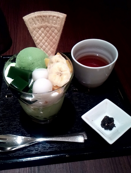 オーダーした抹茶パフェ、思ったよりも抹茶感が強くなくてマイルドな感じ。