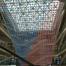 約1年前に銀座にオープンした商業施設です。中央の吹き抜けのかぼちゃはなくなり、青×白と赤×白のストライプ模様の旗に替わっていました。涼しそうでしたが、草間彌生さんのかぼちゃの方が存在感があったのではないでしょうか。