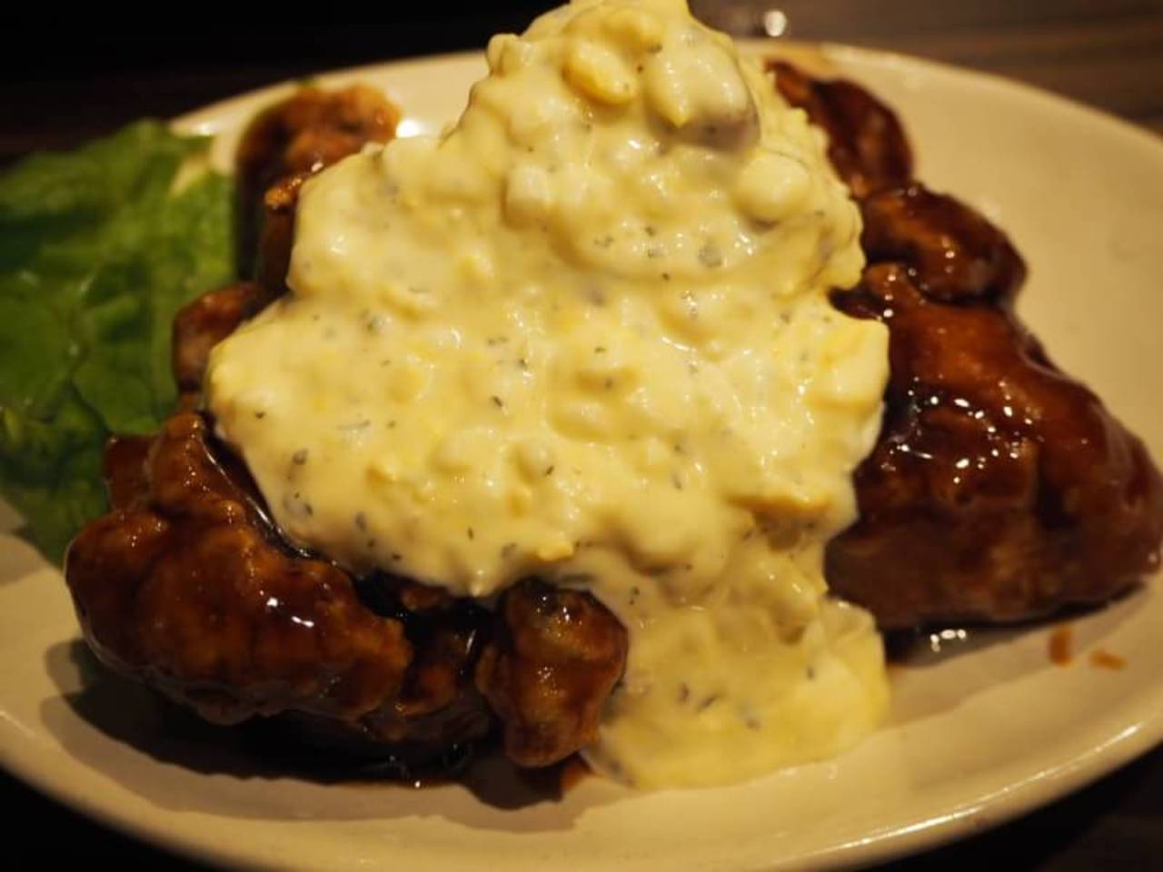 黒酢のチキン南蛮は黒酢なだけあって、今まで食べたチキン南蛮とはひと味違う風味が豊かな一品。チキンも柔らかくてタルタルがたっぷり。ビールにとてもあいます!!