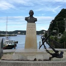 了仙寺からペリーロードを歩いて行った先の海沿いのスペースに、ペリー提督の胸像とイカリが設置されています。