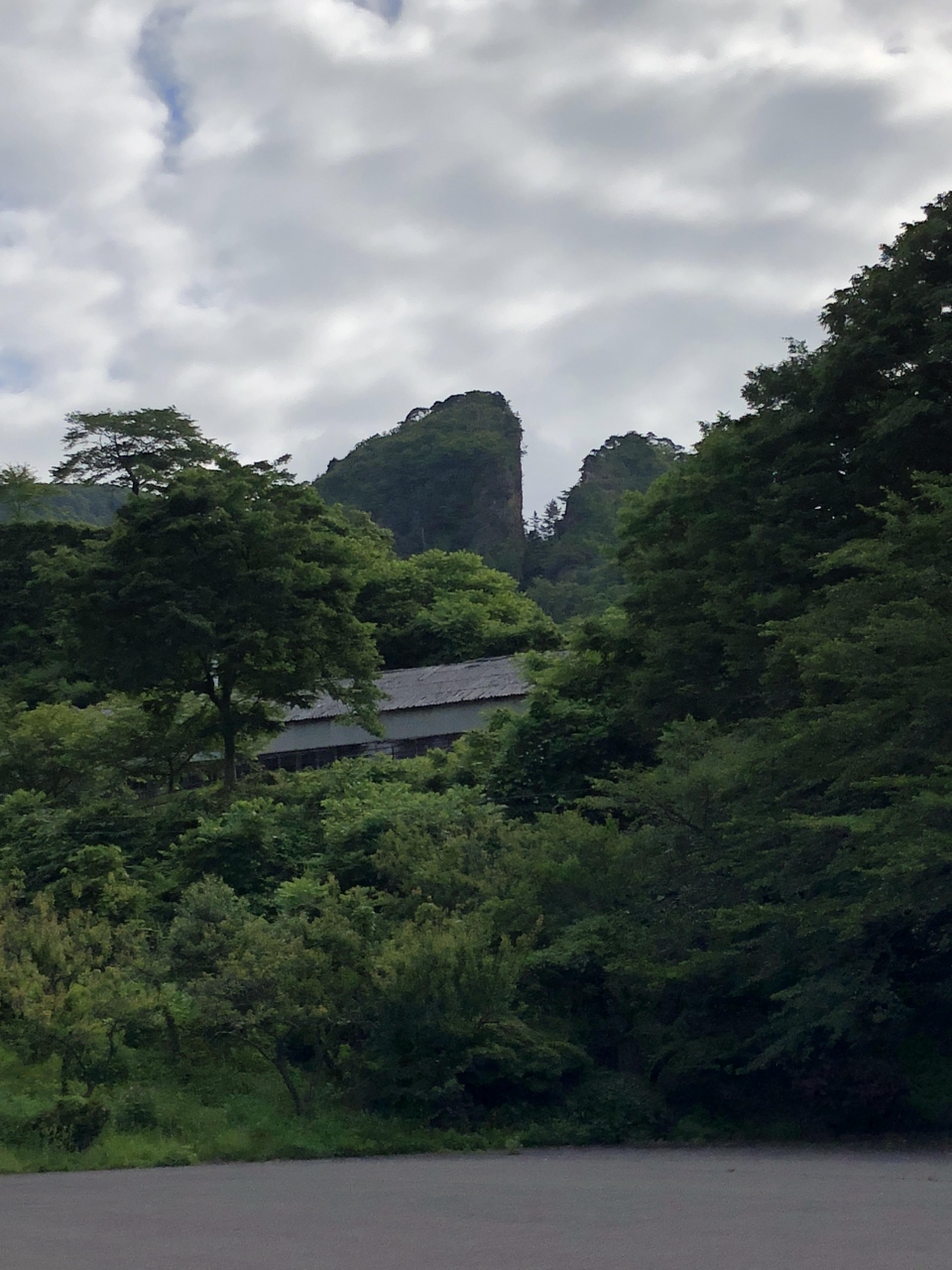 水替無宿の墓から山道をバス道に出ると、金山茶屋の駐車場から見えました!真ん中で鉈で割ったような山が、さらに登っていくと、いっとき見えなくなり、資料館を過ぎて上の駐車場に上がっていくと再び見えて来て、割れ目に面したところに横穴が見える。ほとんどの手作業で、山が割れてしまうなんて、人間の強欲さを見せつけられる思いだ。