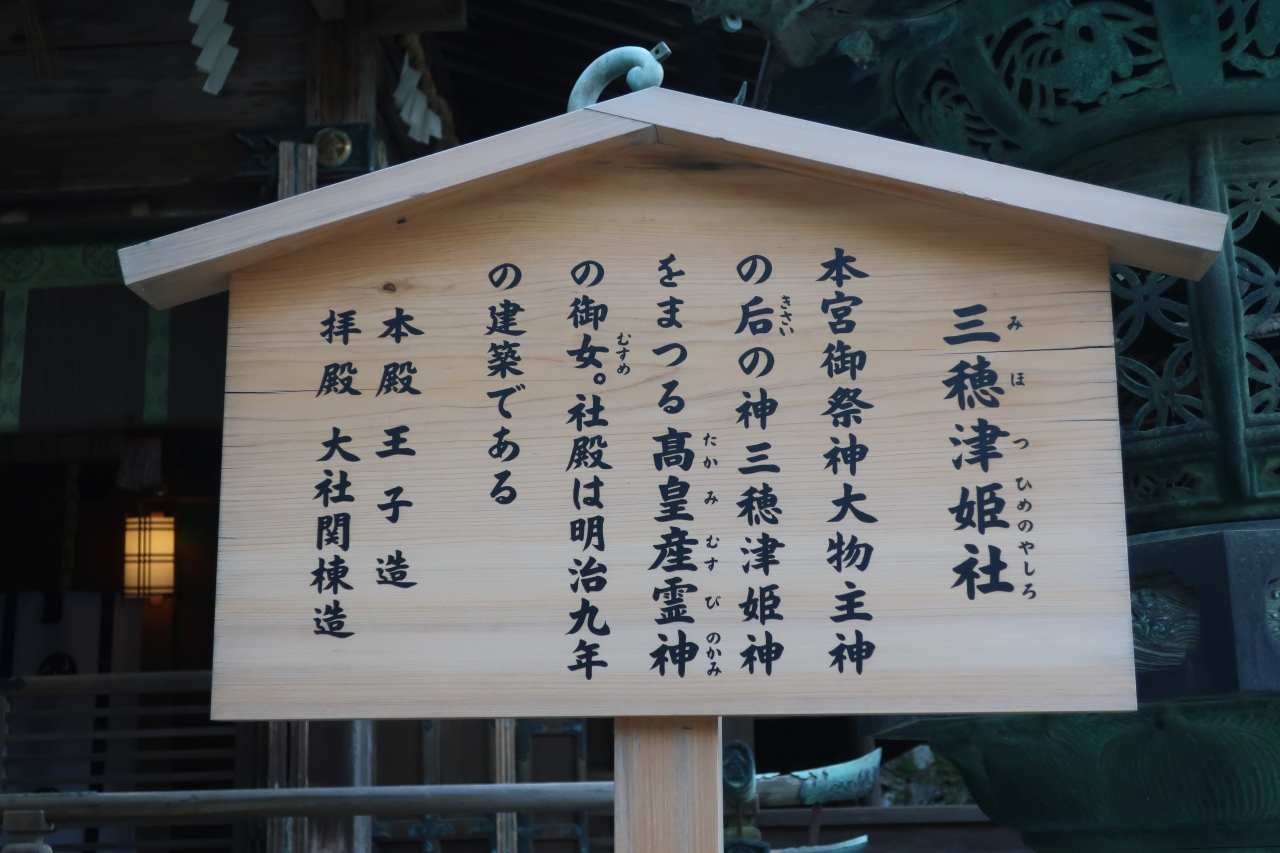 金刀比羅宮の御本宮と渡殿で繋がった社が三穂津姫社です。御本宮よりは小さいですが、遜色ない檜皮葺き、王子造りの社殿で、御本宮の祭神である大物主神の后神、三穂津姫神が祀られております。つまり夫婦の神が並んで祀られ、渡り廊下で行き来しているのです。