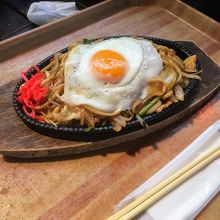 屋外にテーブルが並んでおり、カウンターで商品を注文します。